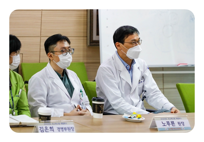 김정연 병원장을 비롯한 유영권 내과원장, 노푸른 가정의학과원장, 김은희 부원장과 김정희 간호과장, 이승희 병동장, 서미나 병동장, 최금희 사회사업실장,