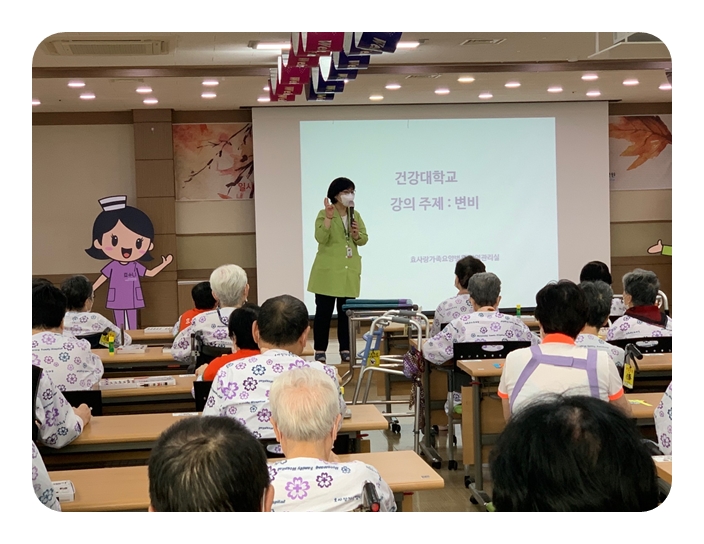 병원에 입원해 계시지만 대학생이라는 호칭으로 불려지는 것에 대한 기대감과 자랑스러움이 효사랑 건강대학교에 또 다른 매력이 아닌가 싶다.