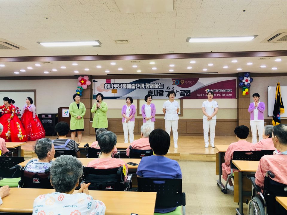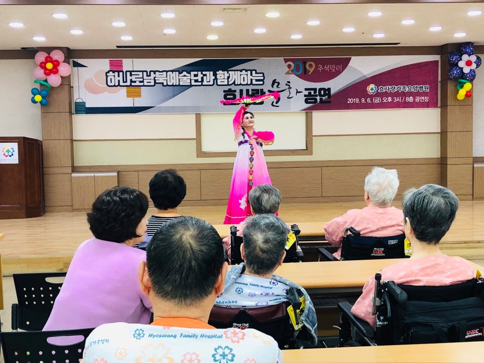 9월 6일 금요일 오후3시 효사랑가족요양병원 8층공연장에서 추석맞이 하나로남북예술단공연이 진행됐다.