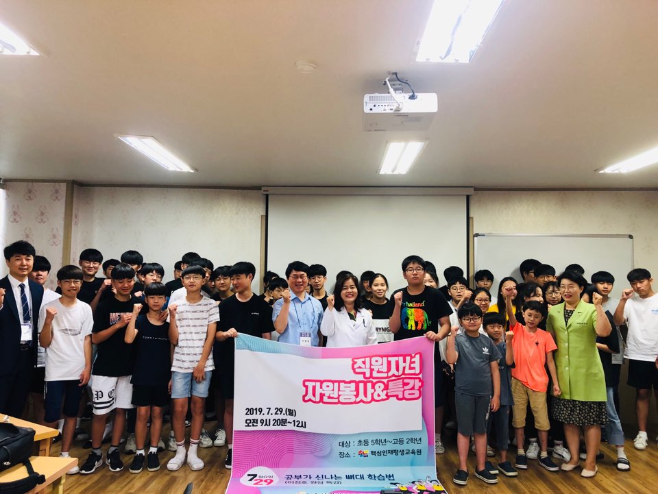 7월29일 월요일 오전9시30분 핵심인재평생교육원에서 초등학교5학년~고등학생인 직원자녀를 위한 특강이 진행됐다.