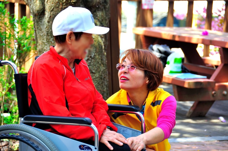 도착해서 담당 선생님으로부터 봉사활동 관련 기본적인 교육을 받고 장애우분들과 1:1로 휠체어 밀기도 하고